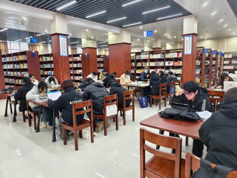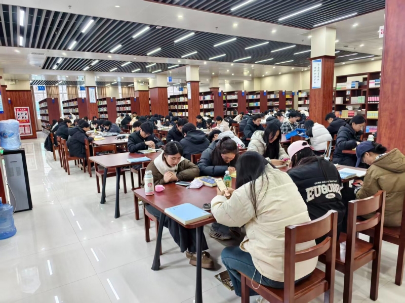 学期末是留校学生复习备考的关键时期,图书馆始终坚守服务育人初心,全力为学生提供优质高效的服务。值班工作人员严格遵守工作制度,按时到岗履职,认真做好读者入馆登记、咨询引导、图书借还等服务工作,及时回应学生的各类需求。针对复习期间学生流量较大的情况,值班人员加强馆内巡逻频次,维护阅览秩序,提醒读者保持安静,为大家营造专注的学习氛围。同时,图书馆确保馆藏资源正常开放,阅览室、自习区等功能区域按时提供服务,各类文献资源供学生随时查阅,全力保障全校学生的复习备考需求,用实际行动践行“读者至上、服务育人”的理念。